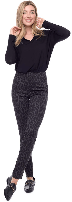 Up Pants - Womens Cheetah Ponte Full-Length Slim Pant