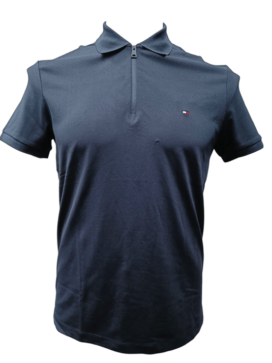 Tommy Hilfiger Mens Performance Pique Zip Regular Fit Polo - Desert Sky