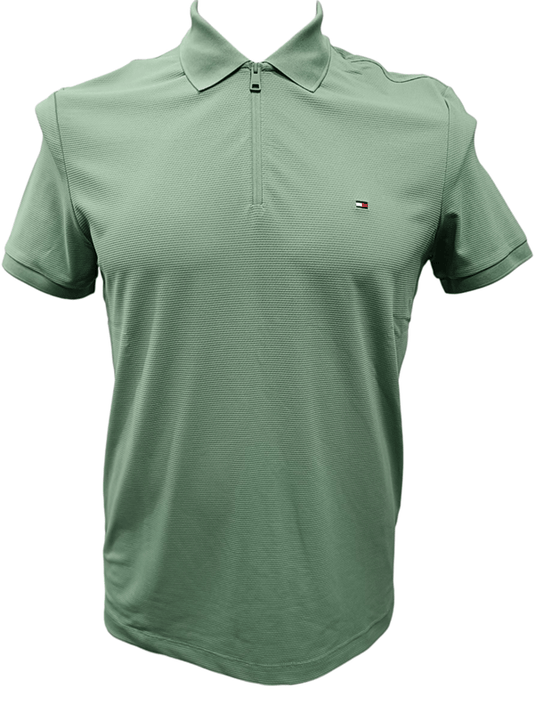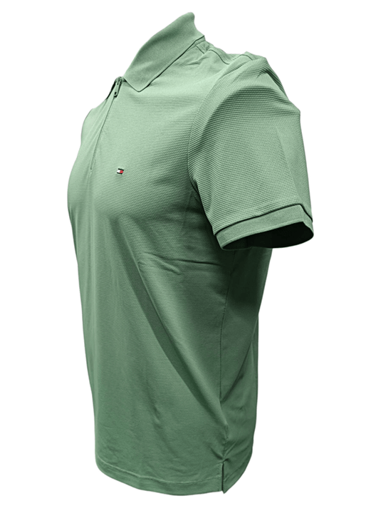 Tommy Hilfiger Mens Performance Pique Zip Regular Fit Polo - Dusty Meadow
