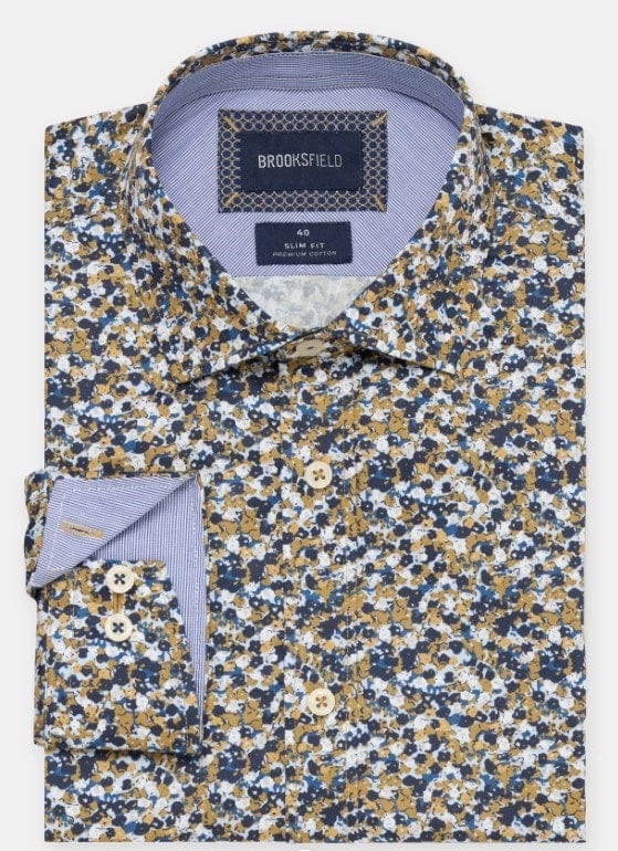 Brooksfield Mens Premium Gold Print Slim Fit Business Shirt