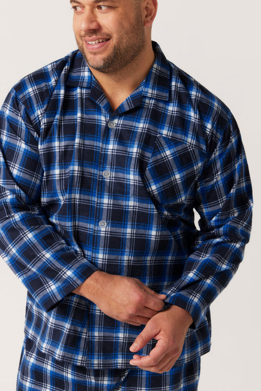 Koala Mens Swansdown Long Sleeve Cotton Cord Pyjama Set - Navy