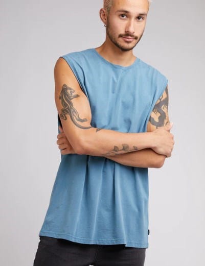 The Standard Fit Muscle by Silent Theory is a Blue Muscle Tank with a standard fit. This Muscle Tank features a sleeveless design, and is best paired with shorts.