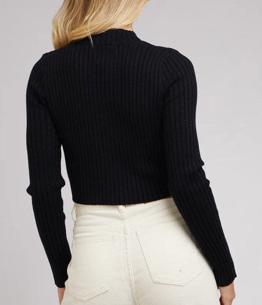 Becca top features a luxe rib fabrication in a classic slim, long sleeve and high neck fit. Pair back with denim for an easy day look or dress up for any occasion.