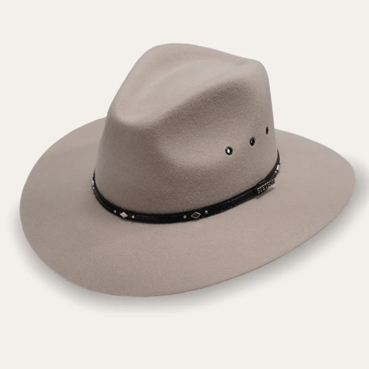 Bluegrass is hand-crafted from premium wool felt. Featuring a leather sweatband and pinch front crown with a Stetson branded satin lining.
