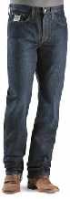 The Cinch White Label Dark Stonewash is a mid rise, relaxed, straight leg jean.