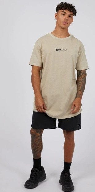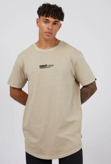 Fabrication: 100% CottonThe St Goliath Synergy Tee is made from cotton and has been overdyed with a heavy wash for slight fading.The tee features a scooped hem line with puff print effect on the fr...