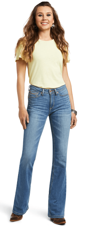 The Ada Arena Jean is an authentic western jean with a boot cut fit, mid rise and features an open pocket and five pocket styling. 98% Cotton / 2% Spandex - Machine Wash