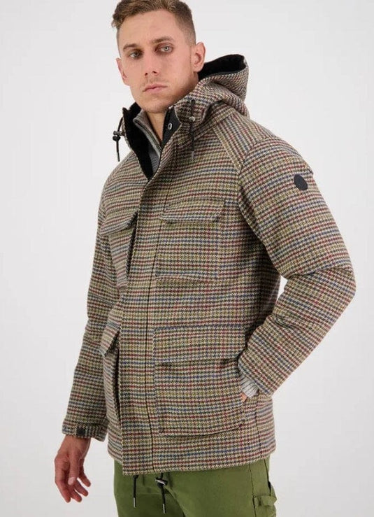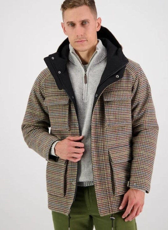 60% merino, 40% nylon, 395gsm outer Quilted polyester lining with Thermolite EcoMade T-Down insulation Wool blend hood and placket lining 226gsm 100% cotton check body lining Patch pockets at ches...