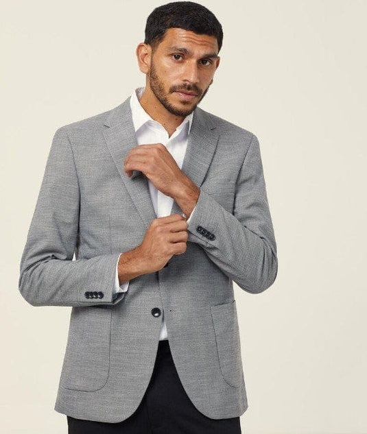 Classic fit Half lined Front patch pockets Feature sleeve lining Two button closure Double vents at back