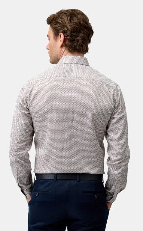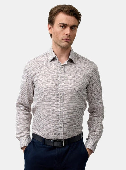 Brooksfield Mens Luxe Print Slim Fit Business Shirt - Tan