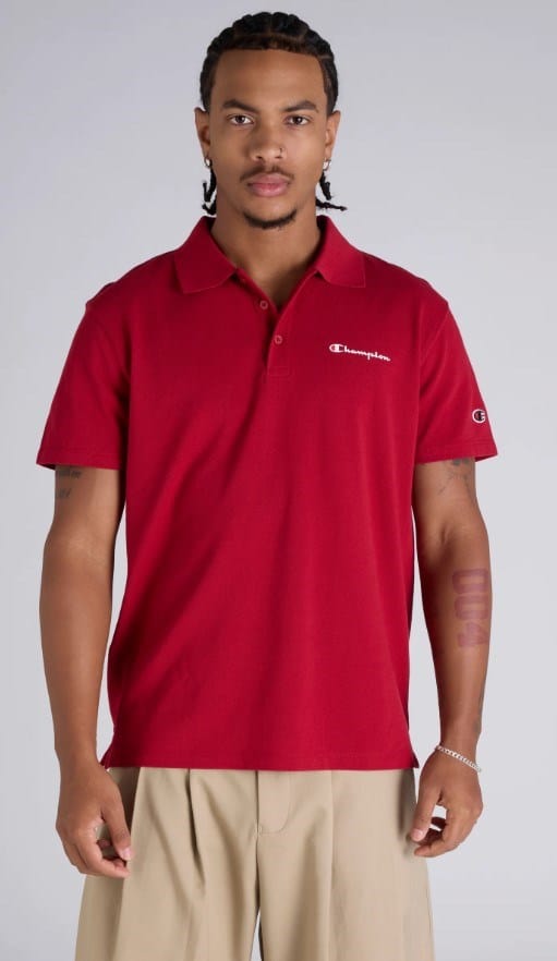 Champion Mens Script Pique Polo Shirt - Cardinal