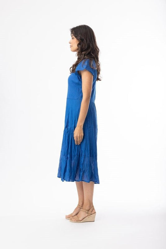Fabric100% Organic CottonDescriptionShine bright this summer in our essentials cotton dress, available in 10 stunning colours. With an open neckline, relaxed short sleeves, and a playful tiered ski...