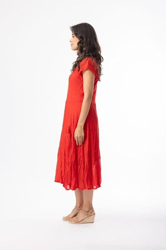 Orientique Womens Cotton Gauze Essentials Dress Bias Pockets - Red