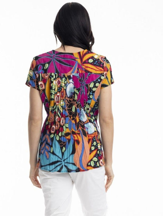 Orientique Womens Copacabana Pleated Short Sleeve Top