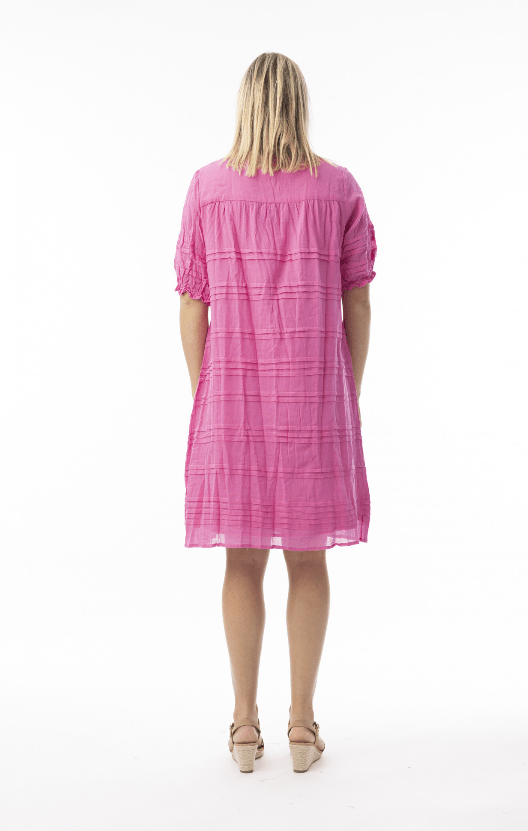 Orientique Womens Cotton Gauze Essentials Pleated Dress - Pink