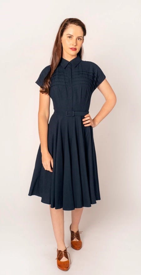 Button front tiered dress featuring blouson elbow length sleeve.100% Cotton