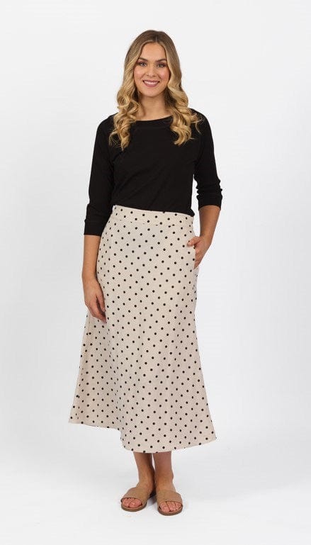 • Vassalli Skinny Leg Ankle Grazer Printed Ponti Pull On Pant in Chocolate• Made from stretch fabric for the perfect fit• Ponti fabric features contrast velvet polka dots• Elastic waistband• Faux f...