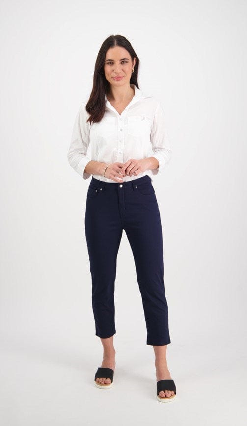 Description:* Vassalli Plain Slim Leg 7/8 Length Lightweight Pull On in Arlo• Made from stretch fabric for the perfect fit• Elastic waistband• Faux fly• Two faux front cutaway pockets• Two back pat...