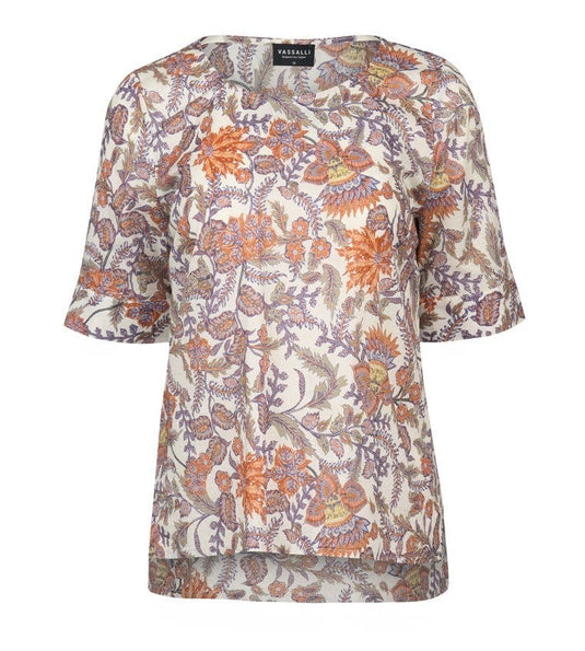 Vassalli Womens Round Neck Top With Elbow Length Sleeve