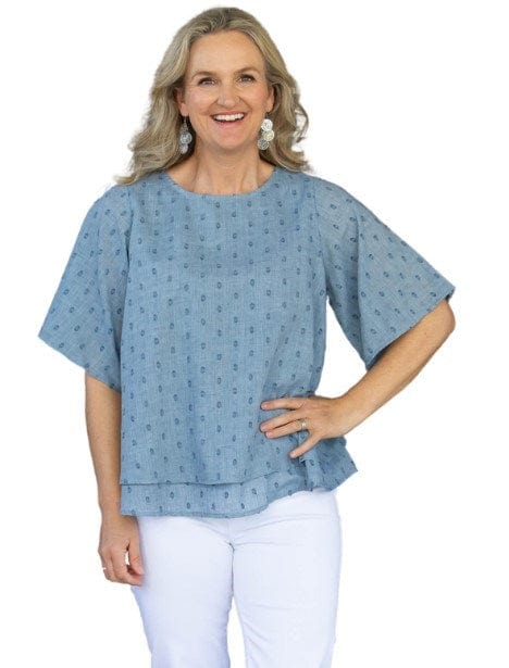 Equinox Womens Layerd Dobby Self Coloured Spot Top
