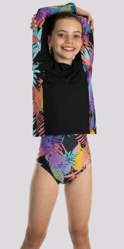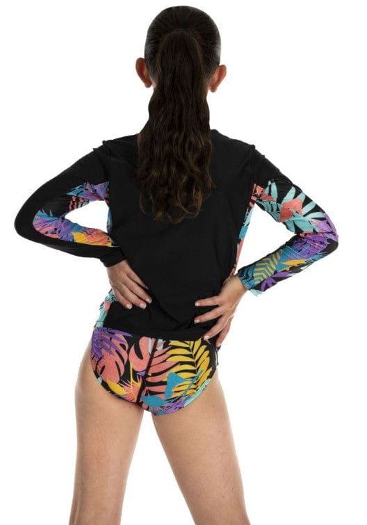 DetailsPrepare young swimmers for fun in the water with a durable rashguard. This fitted top features printed long sleeves and side panels. UPF rated, so she can splash all day.Features