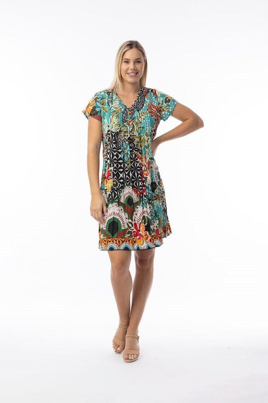 Orientique Womens Guaratiba Dress Patch Short Sleeve