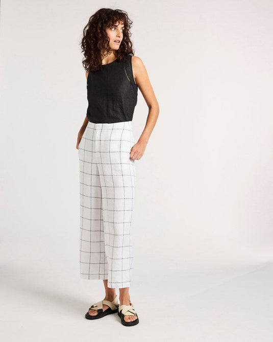 Step into style with the Sentosa Pants. Crafted from a linen blend, these cropped wide-leg pants feature minimal checks for a contemporary look. The quarter elasticated waistband and side pockets a...